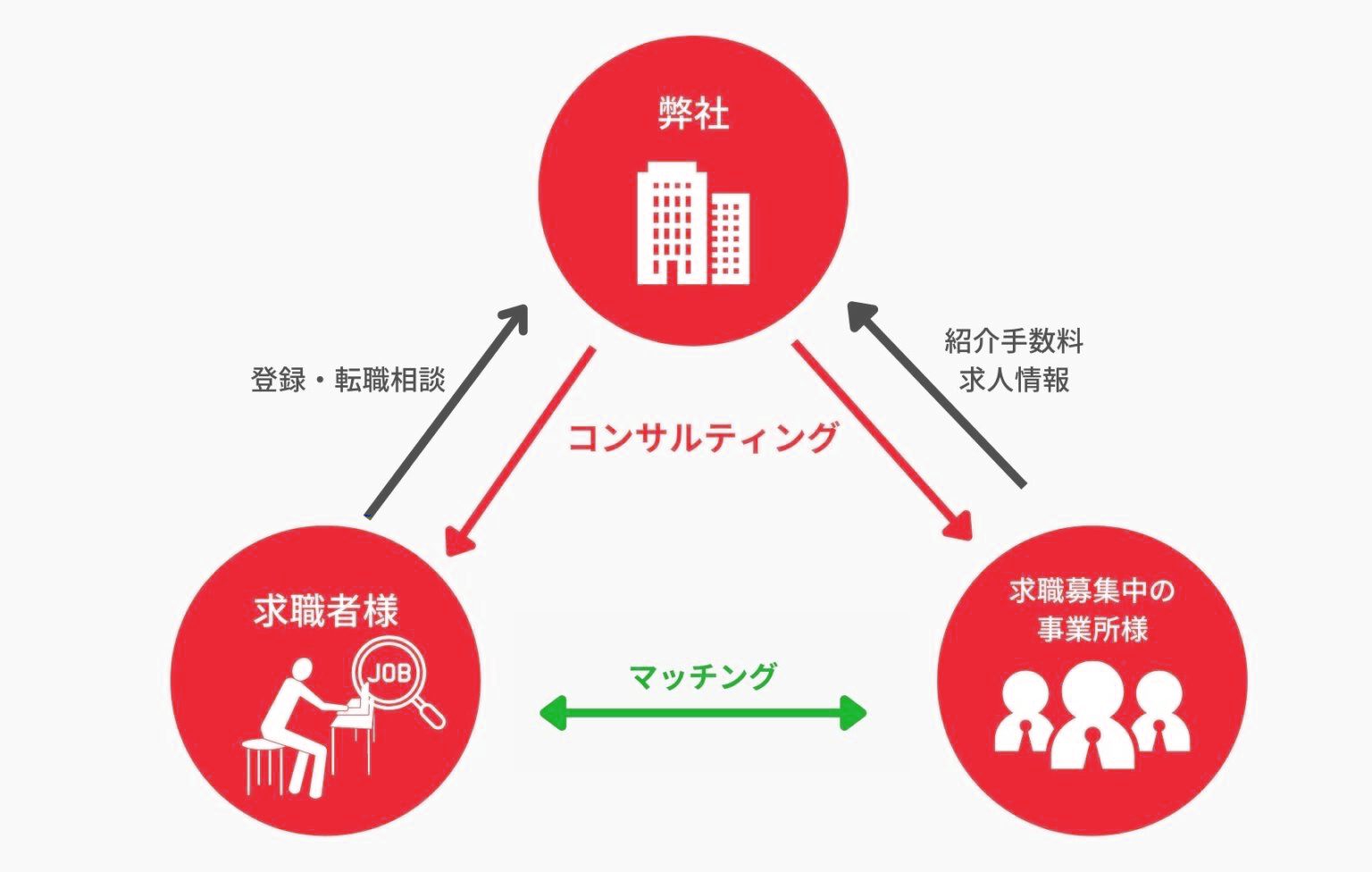 それぞれの国家資格に特化したサービスを展開しており、求職者様と事業所様のニーズに合わせてマッチングを行うことで、ヘルスケア領域の発展に寄与します。